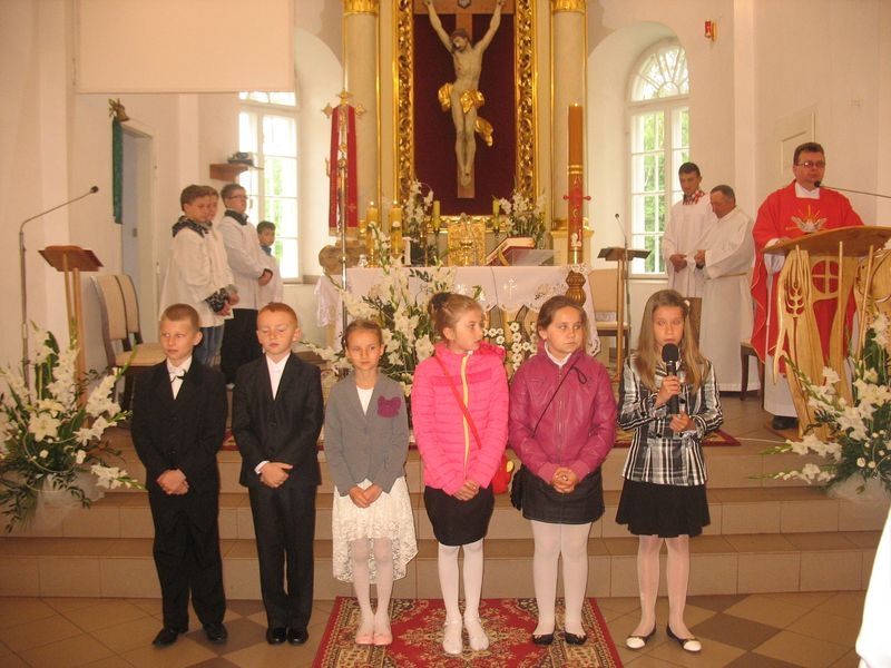 24 maja w Uroczystość Zesłania Ducha Świętego w nasze parafii przeżywaliśmy uroczystość rocznicy I komunii św. W czasie uroczystej Eucharystii dzieci odnowiły przyrzeczenia chrztu świętego i ponowiły przyrzeczenia abstynenckie.