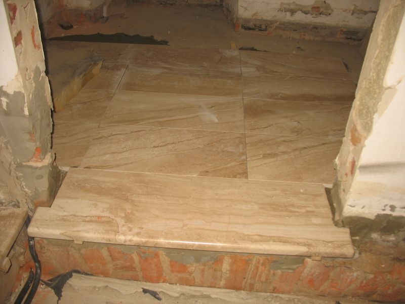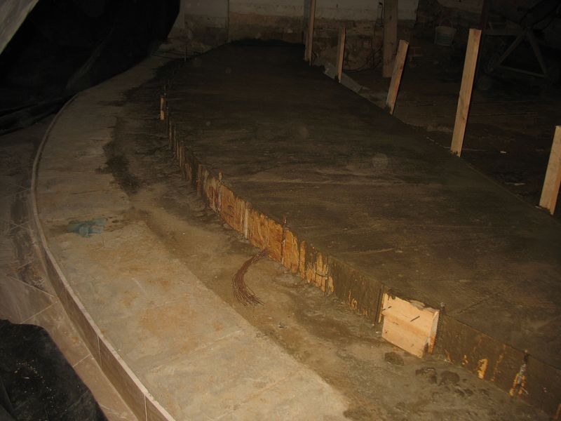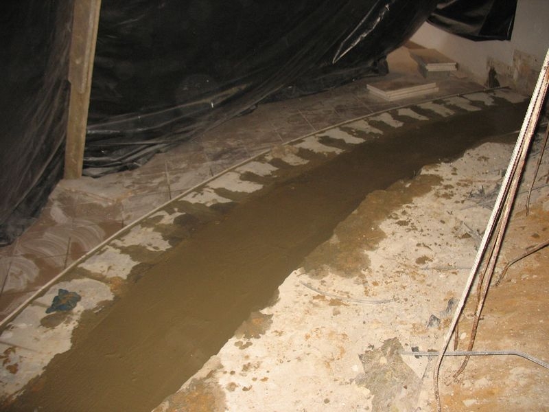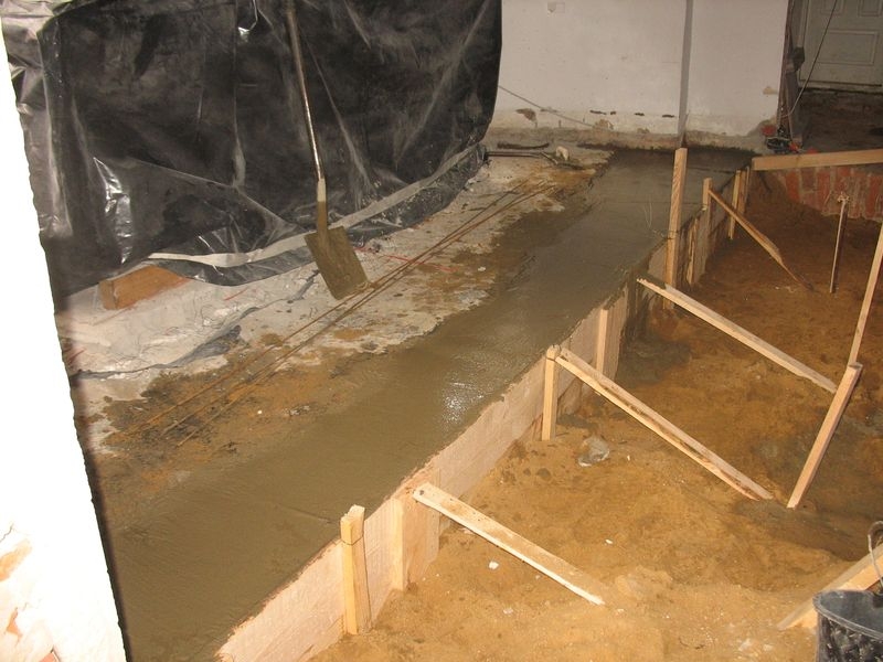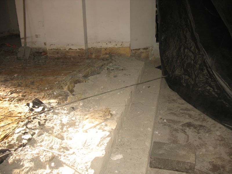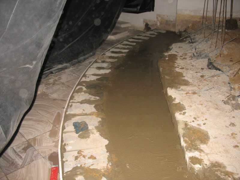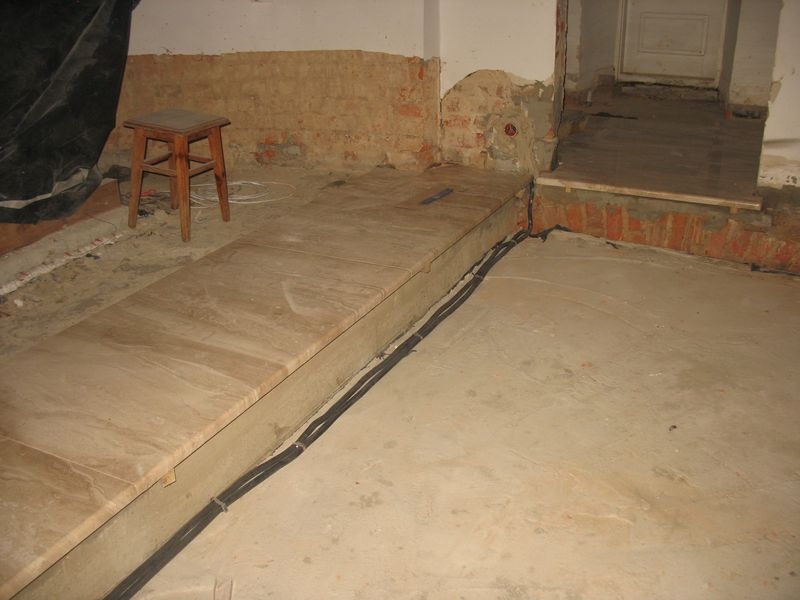 beton pod instalacje grzewczą. Wylane nowe schody i położony marmur. Położone przewody